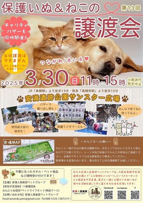 3月30日(日)第13回保護いぬ&ねこの譲渡会(安満人倶楽部ペットグループ)