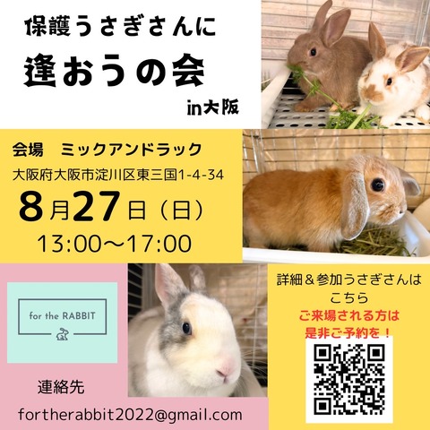保護うさぎ譲渡会 第26回 保護うさぎさんに逢おうの会in大阪【7/27】 : for the RABBIT【保護うさぎの里親探し】