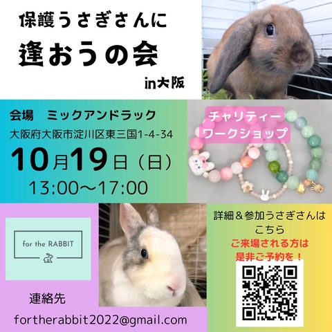 保護うさぎ譲渡会 第29回 保護うさぎさんに逢おうの会in大阪【10/19】 : for the RABBIT【保護うさぎの里親探し】