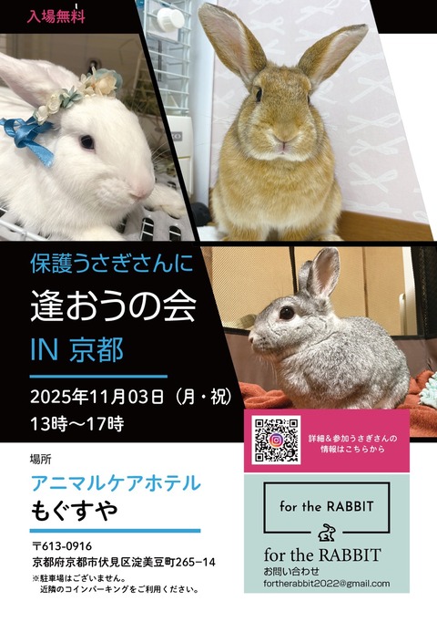 保護うさぎ譲渡会 保護うさぎさんに逢おうの会in京都【11/3】 : for the RABBIT【保護うさぎの里親探し】