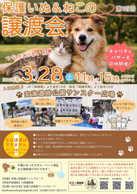 (3/28)第15回保護いぬ&猫の譲渡会(高槻市)