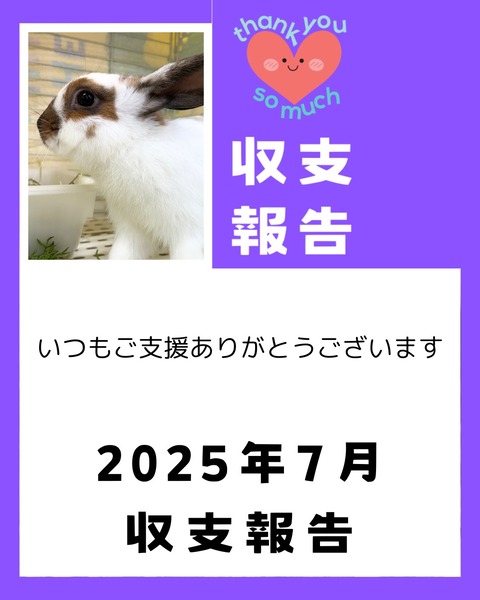 2025年7月収支報告 : for the RABBIT【保護うさぎの里親探し】