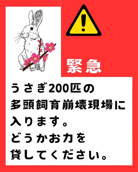 新たに多頭飼育崩壊現場に入ることになりました。和歌山県の個人宅で200匹程度とかなり大規模なレスキューです。for the RABBITが携わった個人宅の多頭飼育崩壊で過去最高数になります。昨晩、相談が入ったばかりで現場の詳しい状況は不明で...