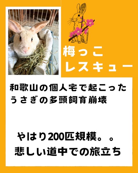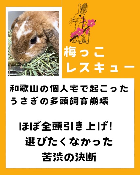 和歌山県の個人宅でおきた200匹規模の多頭飼育崩壊現場「梅っこ」について、for the RABBITの各関連SNSに掲載された記事のまとめです。(新しい記事を上に表示しています。)