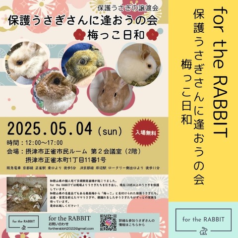 保護うさぎ譲渡会 保護うさぎさんに逢おうの会~梅っこ日和~ : for the RABBIT【保護うさぎの里親探し】