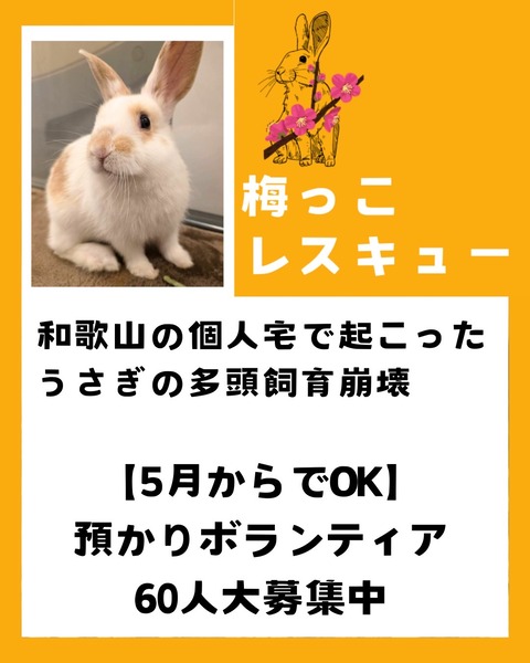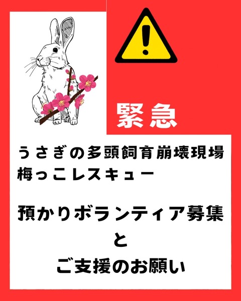 【緊急】預かりボランティア募集とご支援金について 梅っこレスキュー : for the RABBIT【保護うさぎの里親探し】